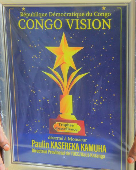 « C’était en guise de la reconnaissance du travail bien fait du directeur provincial de l’office congolais de contrôle, Haut katanga Paulin Kasereka Kamuha, que la structure Congo vision lui a remis ce prix de mérite » a insisté M. Gracian Ngoyi, Coordonnateur national de Congo Vision.